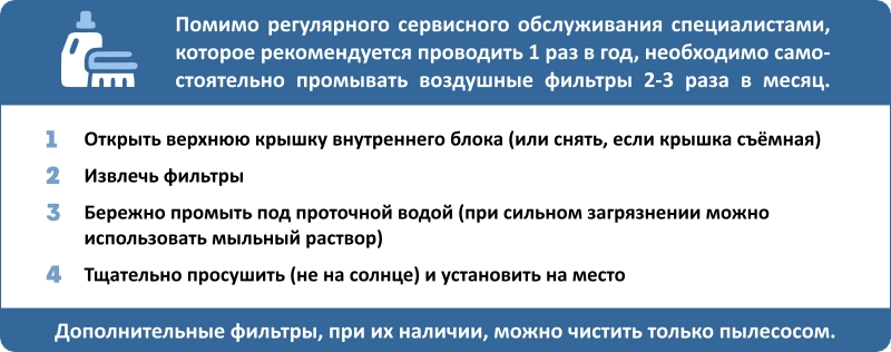 • Самодиагностика — после отключения кондиционера в автоматическом режиме включается вентилятор для осушения теплообменника внутреннего блока. Это препятствует образованию плесени и неприятных запахов