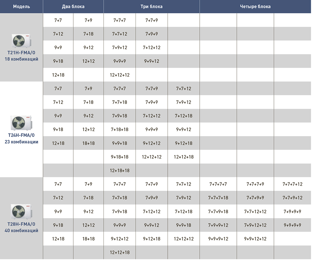 Внутренние блоки одновременно могут работать только в одном режиме — охлаждения или нагрева, но в каждом помещении можно задавать и поддерживать индивидуальные параметры воздуха при помощи индивидуального пульта управления.
