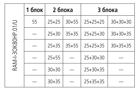 При подключении нескольких внутренних блоков, суммарная производительность которых превышает номинальную мощность наружного блока, при одновременной эксплуатации каждый из них будет работать со сниженной производительностью. Такой вариант подключения допускается в случае, когда внутренние блоки используются не одновременно (например, ночью – спальня, днем – гостиная).