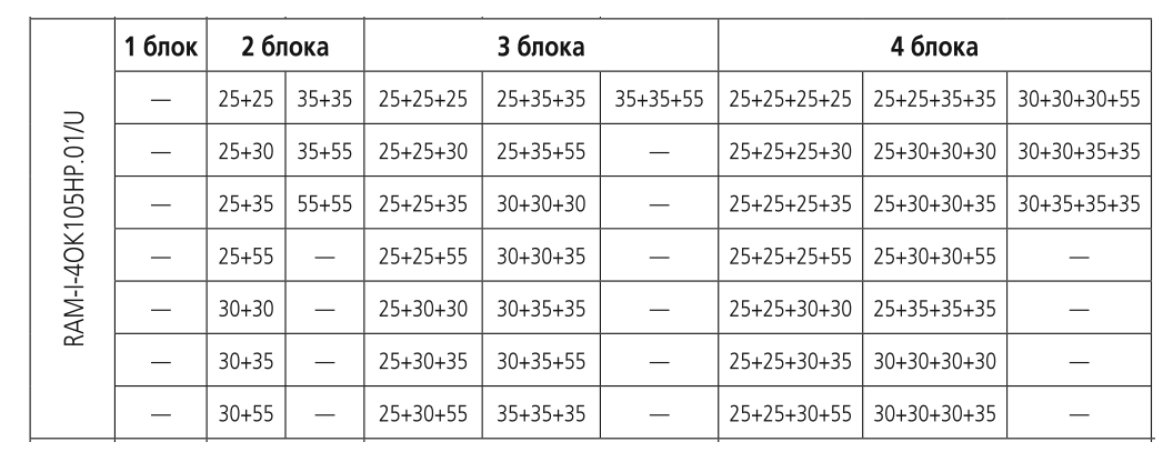 При подключении нескольких внутренних блоков, суммарная производительность которых превышает номинальную мощность наружного блока, при одновременной эксплуатации каждый из них будет работать со сниженной производительностью. Такой вариант подключения допускается в случае, когда внутренние блоки используются не одновременно (например, ночью – спальня, днем – гостиная).