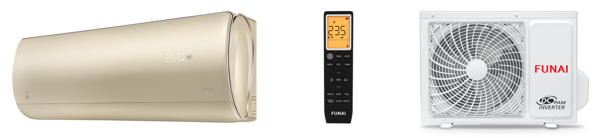 В 2023 году Funai представляет новую линейку инверторных кондиционеров с элегантным внутренним блоком, выполненном в благородном цвете «шампань». Модели кондиционеров серии KATANA Inverter воплощают в себе новейшие достижения науки, техники и технологий, тенденции дизайнерской мысли. Предусмотрена установка модуля Wi-Fi для удаленного управления сплит-системой (модуль приобретается отдельно). Внутренний блок комплектуется 4 дополнительными фильтрами SMART ION. Сплит-система работает на новейшем экологичном хладагенте R32. Высочайший класс сезонной энергоэффективности (А+++/++) — максимально эффективное и экономичное использование. Стабильная работа при низких температурах (до -20°C в режиме обогрева).