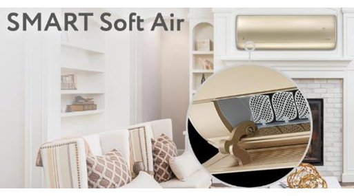 • SMART Soft Air — объемное распределение воздуха сквозь перфорированные жалюзи. Вертикальные жалюзи особой формы с перфорацией создают мягкий и объемный воздушный поток, который рассеивается по всему помещению.