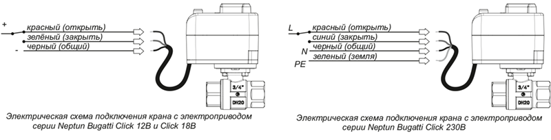 Шаровой кран с электроприводом Neptun Bugatti Click 12В 1/2"