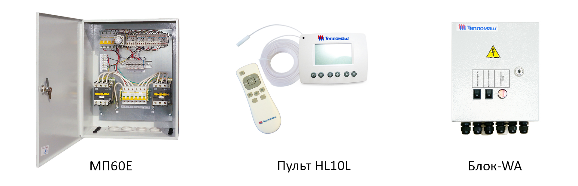 Подключение через модуль МП60Е. Модуль предназначен для подключения одной завесы со степенью защиты IP54 к электрической сети и управления с помощью выносного пульта HL10L. К одному пульту HL10L можно подключить до двадцати завес и модулей МП60Е. Подключение дополнительного оборудования необходимо осуществлять при помощи БЛОК-WA.