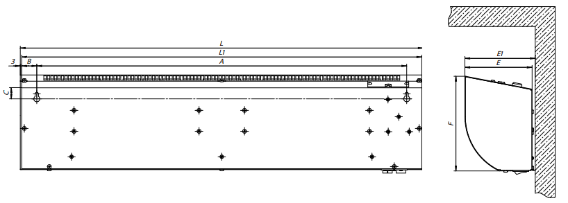 С электрическим нагревом и высотой установки до 2м. Корпус изготовлен из листовой стали, покрытой полимерным покрытием. Внутри расположены диаметральные вентиляторы и игольчатые электронагреватели «ститч-элементы». Забор воздуха с лицевой части прибора.