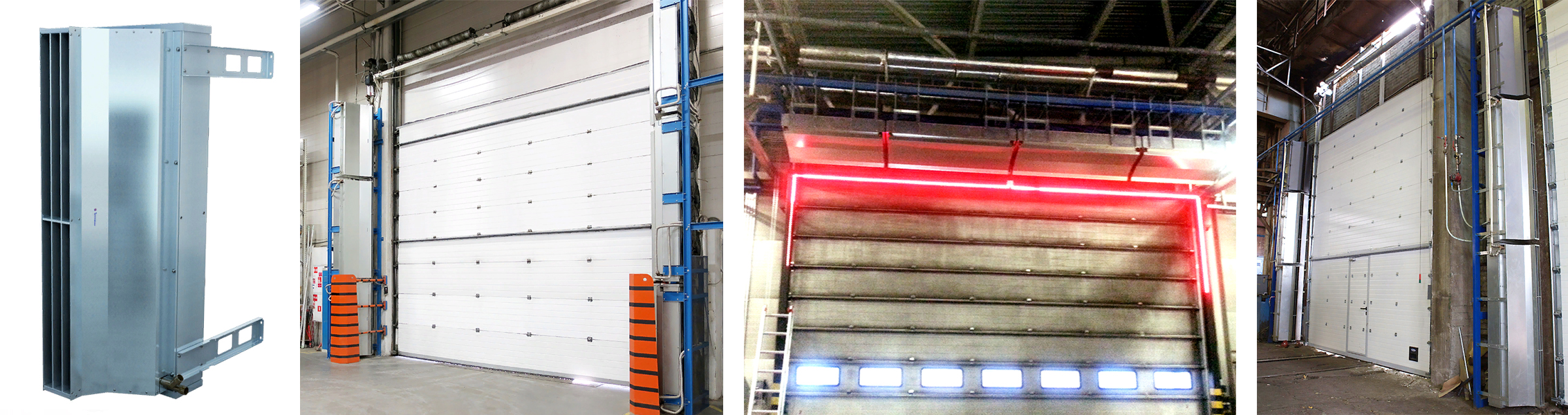 Промышленная тепловая завеса шиберующего (отсекающего) типа из оцинкованной стали. Устанавливается внутри помещения, горизонтально над проемом или вертикально, сбоку от него, как можно ближе к краю. При большой ширине проема можно располагать сразу несколько завес вплотную друг к другу и управлять ими с одного пульта. Применяется в складских помещениях, цехах, гаражах, производственных предприятиях, ангарах и других помещениях большой площади.