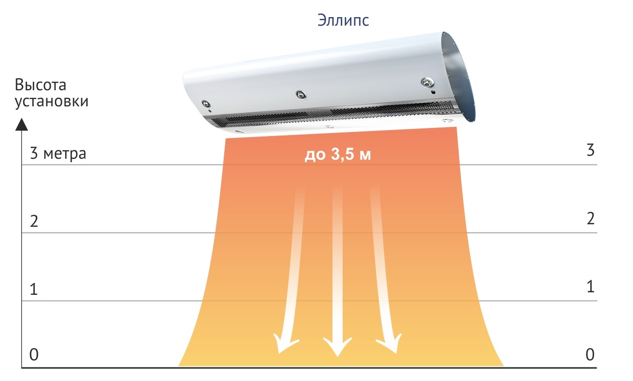 Воздушная завеса серии 600 Эллипс работает без нагрева в режиме вентиляции для отсечения холодного воздуха. Корпус представлен в двух вариантах: нержавеющая или оцинкованная сталь со встроенными светильниками. Высота подвеса устройства до 3,5 метров. Монтируется прибор над входными группами или в тамбурах помещений различного назначения: точки общепита, административные и офисные здания, школы и т.д. Управление реализовывается при помощи дистанционного или проводного (сенсорного) пульта.
