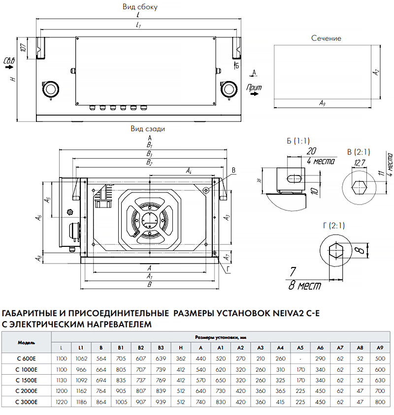 Приточная установка Neiva 2 C-600-E9-F5-OF-DZ-R с электрическим нагревателем